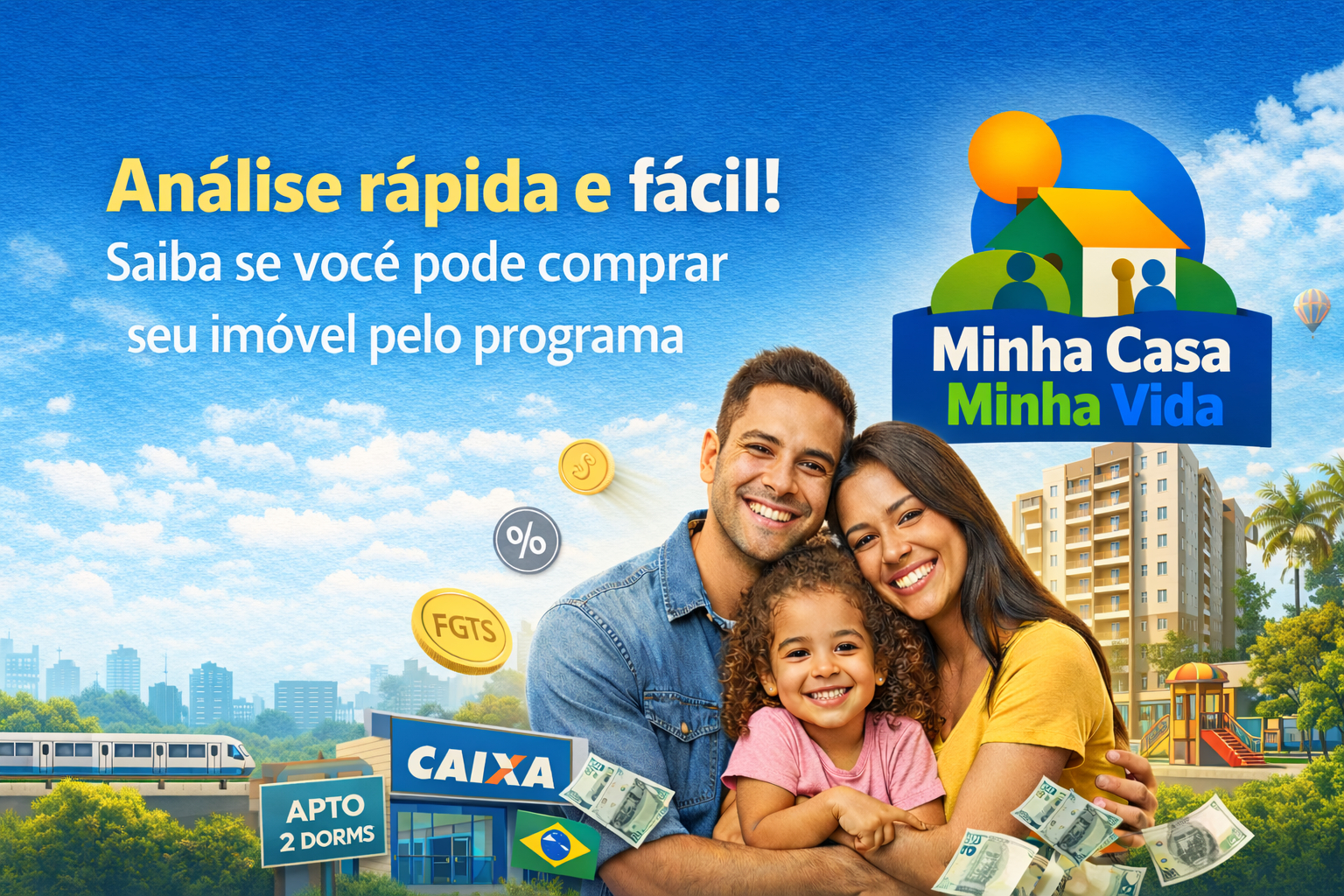 O Minha Casa Minha Vida é o programa do Governo Federal criado para facilitar o acesso à casa própria, oferecendo subsídios, juros reduzidos e condições que cabem no seu bolso — tudo com financiamento pela Caixa Econômica Federal, o maior banco habitacional do país.